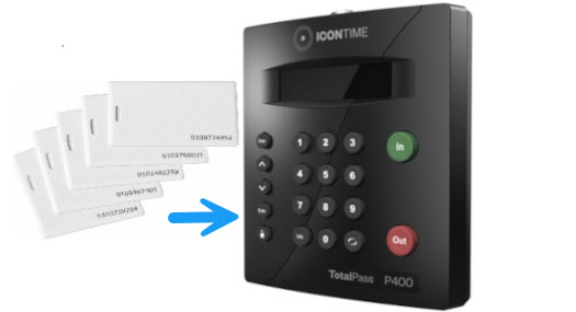 These prox cards work with Icon P400, Icon P600, Icon TotalPass clocks, and compatible Paychex/Icon clocks.